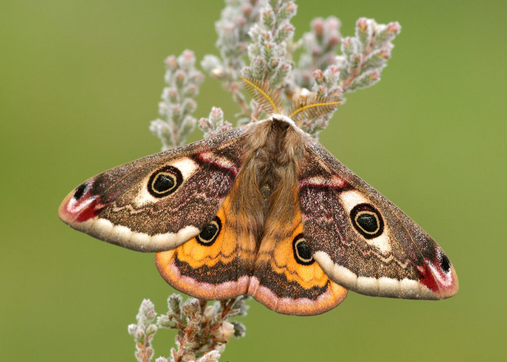 This species has orange-and-red wings up to 9cm across, large eye spots to scare off predators and males have big, furry antennae with which they can detect a female’s pheromones from 2km away.