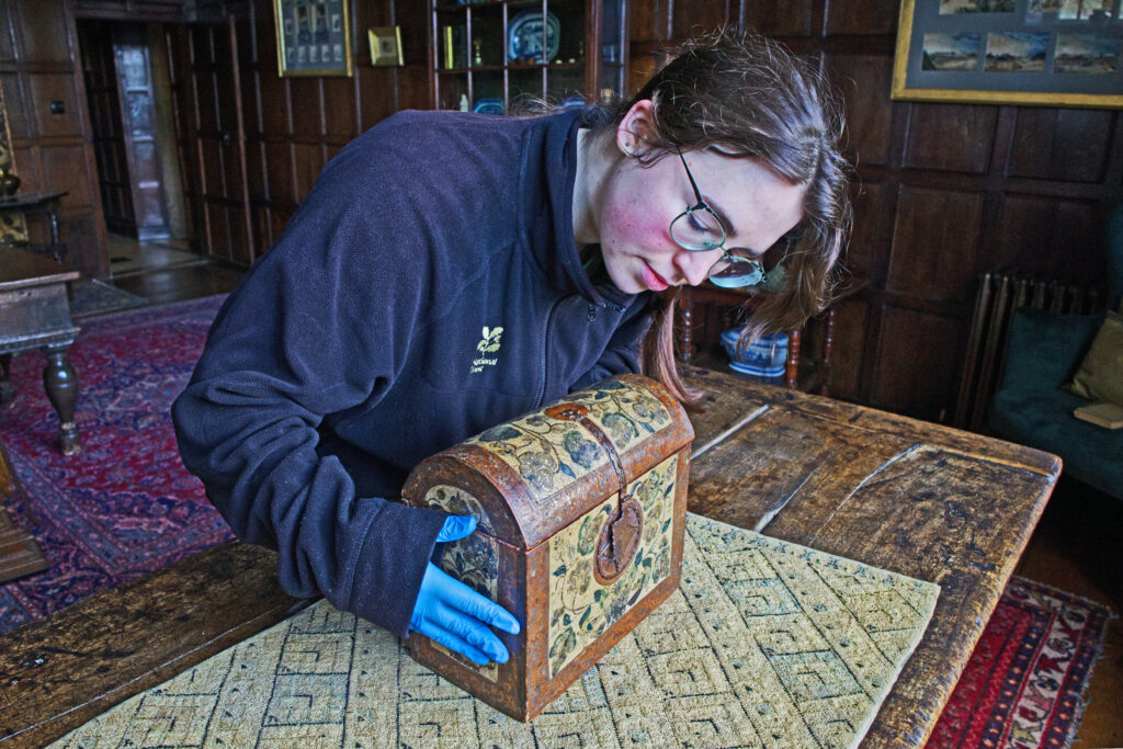 A conservator inspecting the Barniz de Pasto casket. Image: James Dobson / The National Trust.
