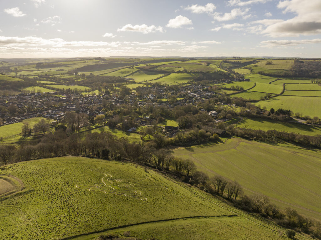The village of Cerne Abbas lies beneath Giant Hill. Image: © James Beck / National Trust Images