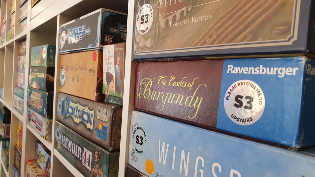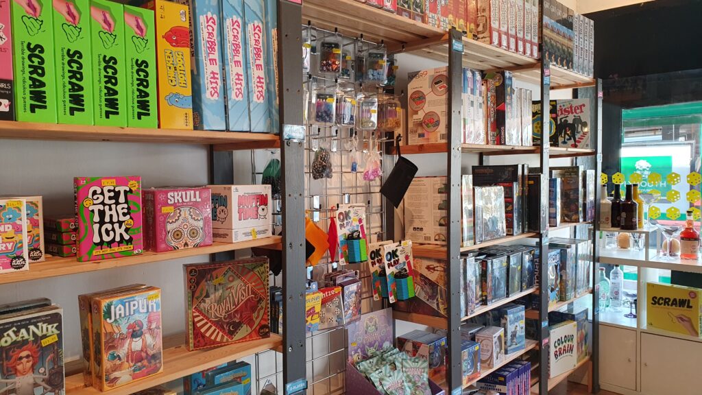 Customers can easily choose which one to play next from row after row of shelving which adorns both the upstairs and downstairs parts of the cafe. There’s even a shop where you can purchase boardgames to take home with you. Magic!