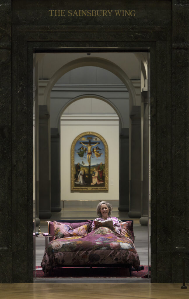 Gillian Phillips settling in for the night at the National Gallery. Image: © The National Gallery, London.